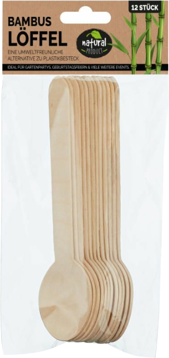 Party Besteck Löffel aus Bambus ca. 16cm 12er Set mit Headerkarte