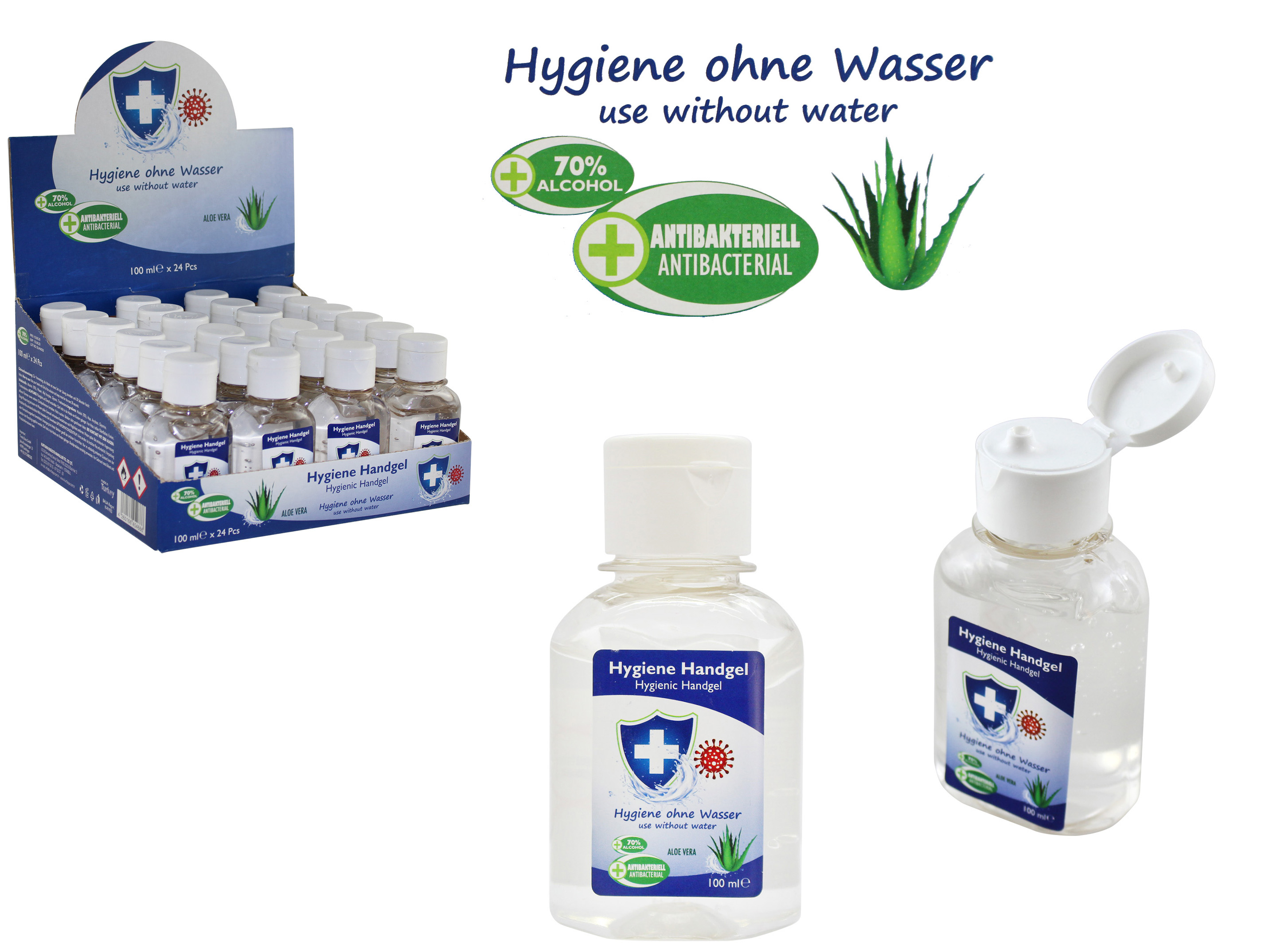 Hygiene Handgel Aloe Vera Antibakteriell 70% Alcohol 100ml 24er T-Dsp.