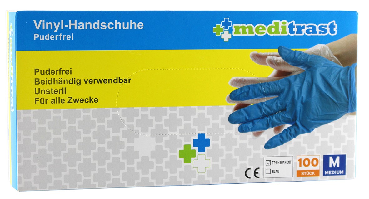 Meditrast Vynil Handschuhe Gr.M Transparent Unsteril Puderfrei CE 100er Box