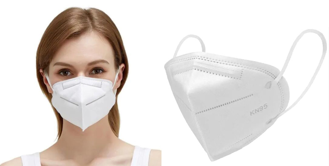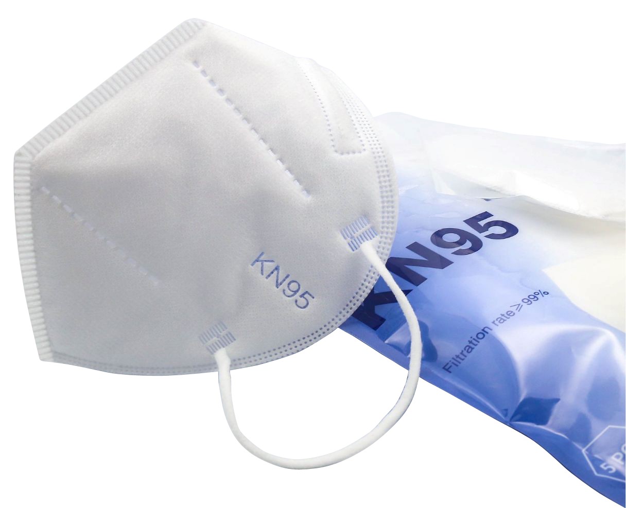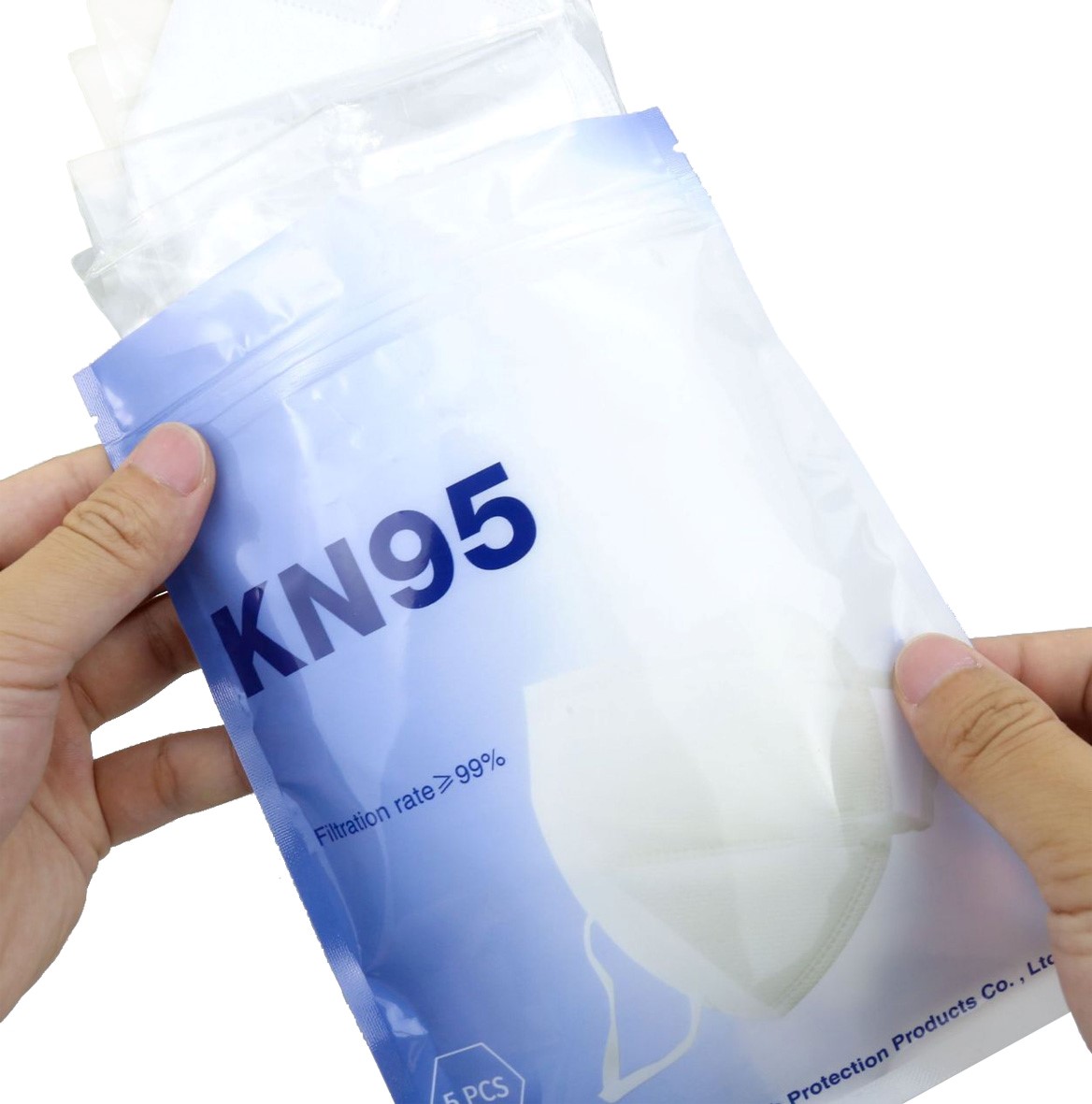 Mund Gesichtsschutzmaske KN95 4-lagig mit Ohrschlaufen Justierbarer Nasenbügel Einheitsgröße CE 5 Stück im Set