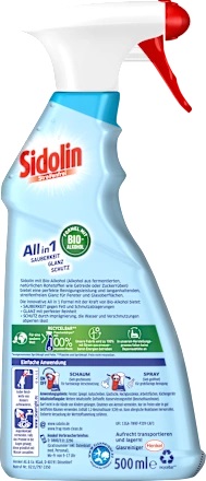 Sidolin Cristal Glasreiniger in 500ml Sprühflasche, Streifenfrei, 3in1 Glanz/Sch