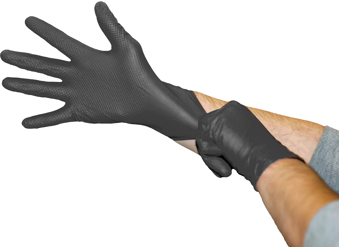 SolidSafety High Grip Nitril-Chemikalienschutzhandschuh Gr.L (Schwarz) puderfei 100er Box (ISO 374-1/Typ B; EN 374-5:2016; EN 420:2010; EN 455; EN 455-1)