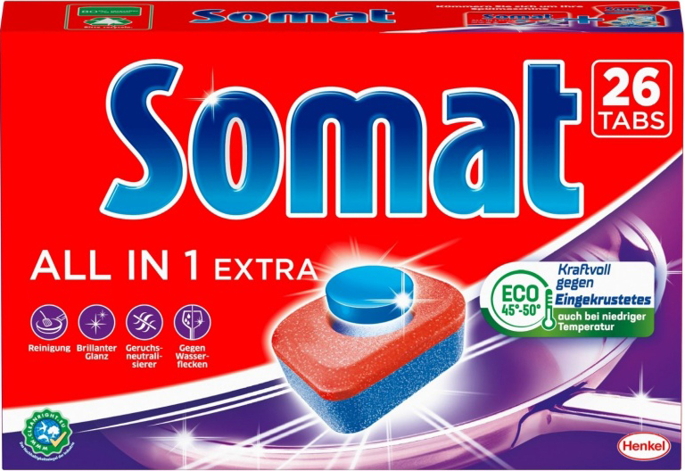 Somat Tabs All in 1 Extra 26er Packung für sauberes, glänzendes Geschirr ohne Wasserflecken