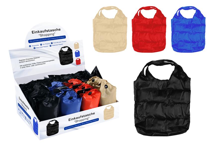 Einkaufstasche faltbar 33 x 34cm 4/s in 24er T-Dsp. (schwarz, dunkelblau, rot, beige)