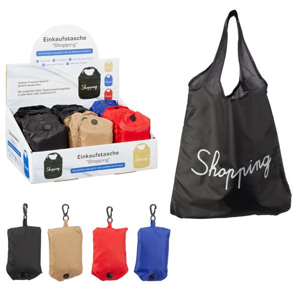 Einkaufstasche "Shopping" faltbar 33 x 34cm 4/s in 24er T-Dsp. (schwarz, dunkelblau, rot, beige)