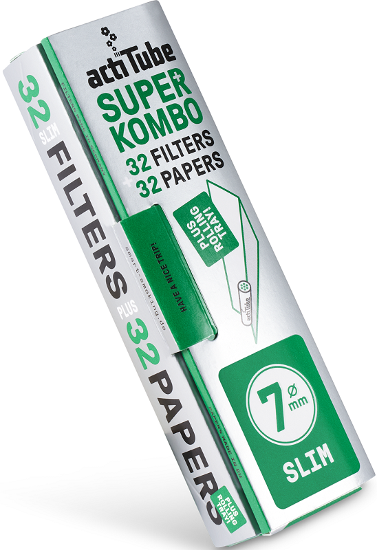 ACTITUBE Superkombo 7mm SLIM Filters + Papes mit Rolling Tray, je Heftchen 32 Fi