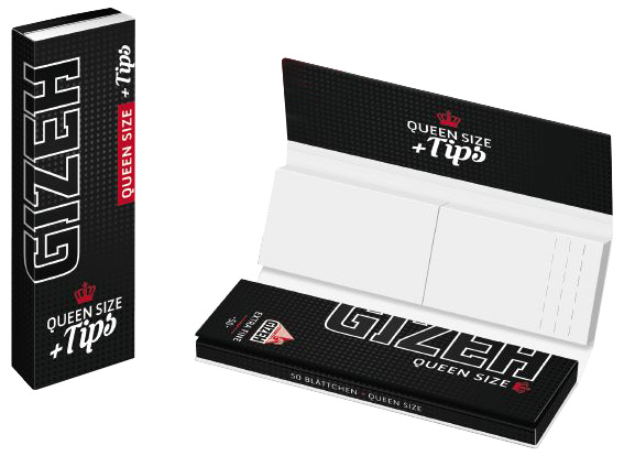 GIZEH BLACK Queen Size+Tips 50 extra feine Blättchen 78x44mm+50 Filter Tips.(1 ¼