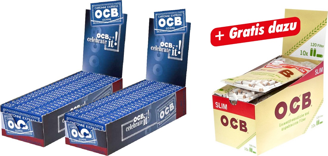 OCB - AKTIONSPAKET - 2x OCB Blau Gomme im 25er T-Dsp. (90306) + GRATIS OCB Organic Slim Filter 10er Dsp. (96707)