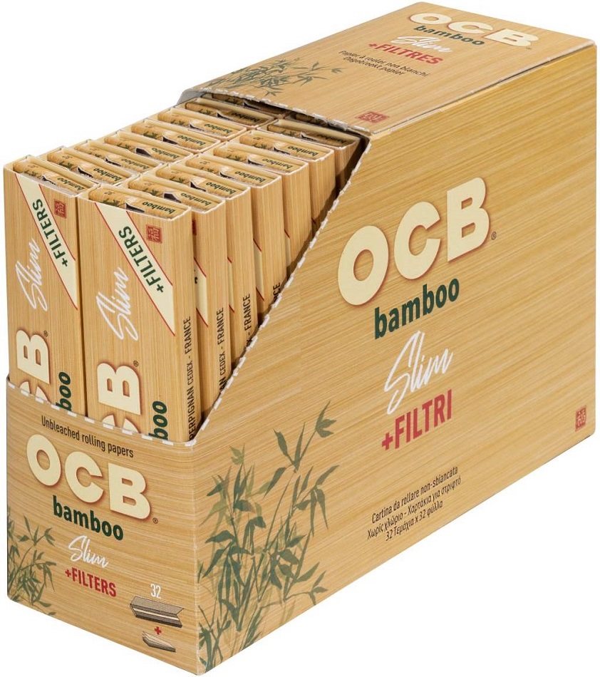 OCB Bamboo Slim Long Papers mit Filter Tips 32 Blättchen + 32 Filter Tips 115x60mm 32er T-Dsp.