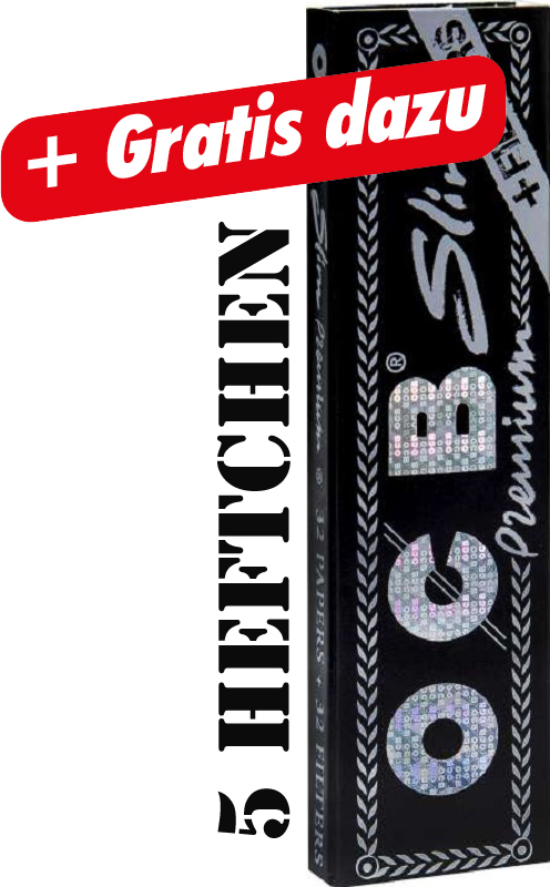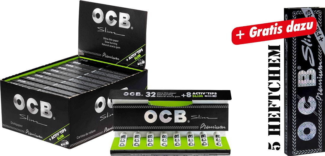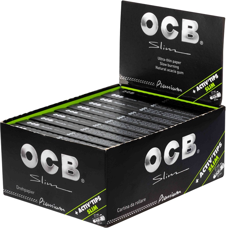 OCB Schwarz Slim Long Papers 32 Blatt je Heftchen + 8 Stk. Aktivkohlefilter Slim mit Keramikkappe Ø 7mm im 20er T-Dsp. + 5 Heftchen Premium Slim Papers (90305) GRATIS