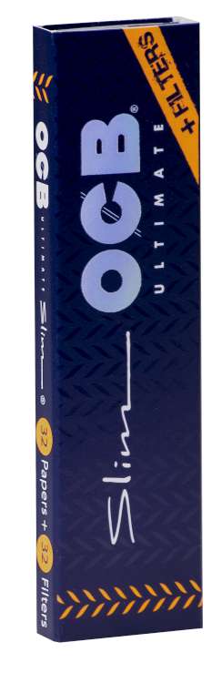 OCB Ultimate Slim + Filter Tips(100% Hanf)109x44mm 32 Heftchen a 32 Blatt+Filter Tips(Dünnstes OCB Paper 10g pro m²)