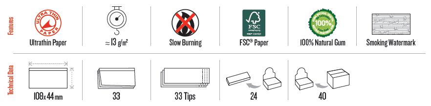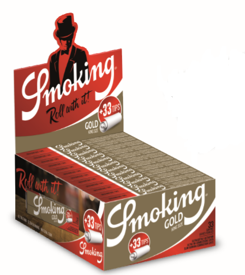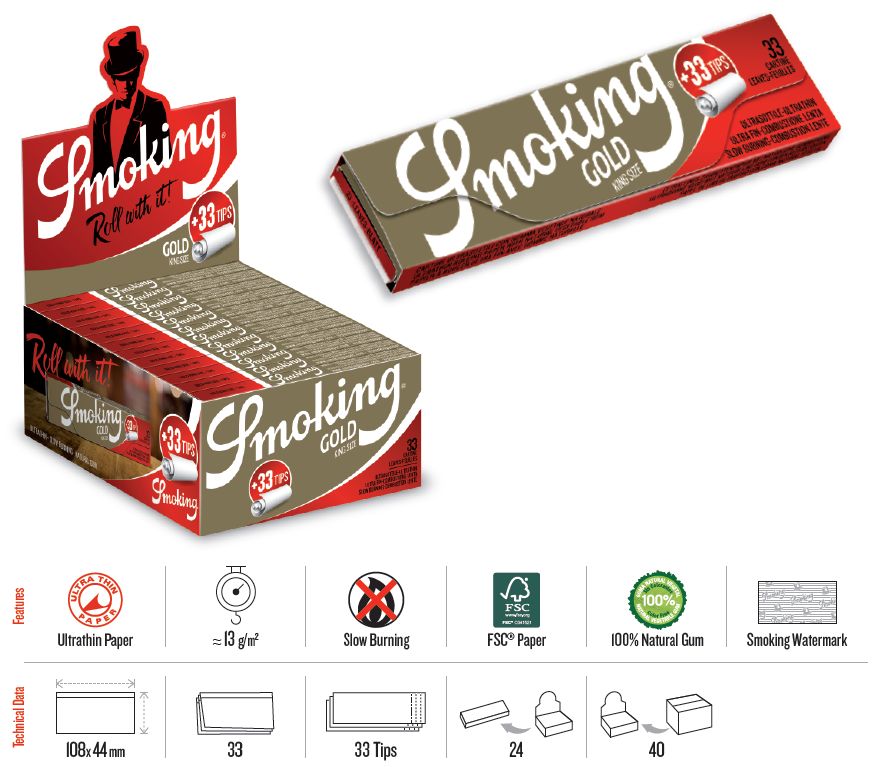 Smoking Gold King Size + Tips 24 Heftchen a 33 Blatt + 33 Filter 108x44mm Tips im 24er T-Dsp.