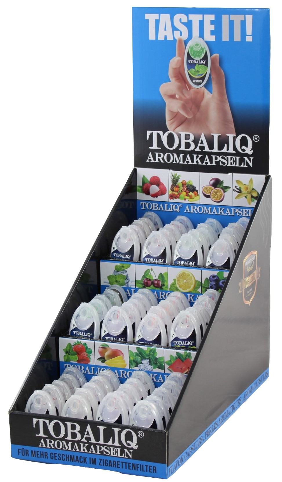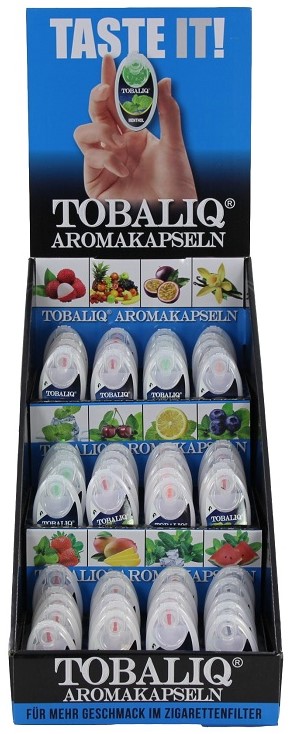 Aroma Kapseln TobaliQ (Menthol, Black Ice, Mint Cherry, Mint, Mint Lemon, Blueberry Mint, Strawberry Mint, Ice Strawberry, Litchi, Watermelon Mint, Apple Mint, Mango, Ice Cola, Whisky, Energy, Vanilla, Passion Fruit, Coconut, Mix Flavor, Menthol)60er T-Dsp.