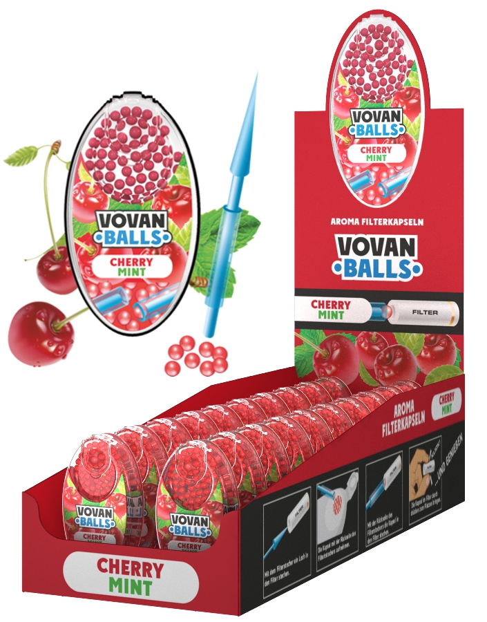 CHERRY MINT Aromakapseln Vovan Packung mit 100 Kapseln für Zigaretten, Zigarillo