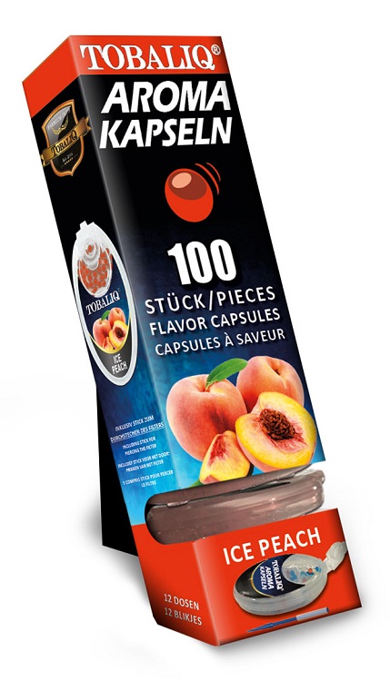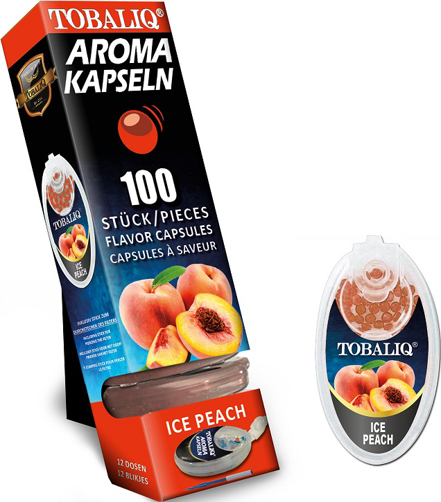 ICE PEACH Aromakapseln Tobaliq Packung mit 100 Kapseln für Zigaretten, Zigarillos und IQOS Sticks 12er T-Dsp