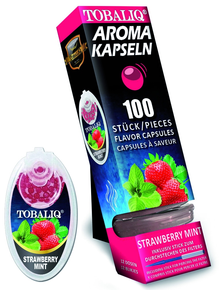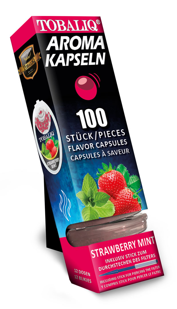 STRAWBERRY MINT Aromakapseln Tobaliq Packung mit 100 Kapseln für Zigaretten, Zigarillos und IQOS Sticks 12er T-Dsp