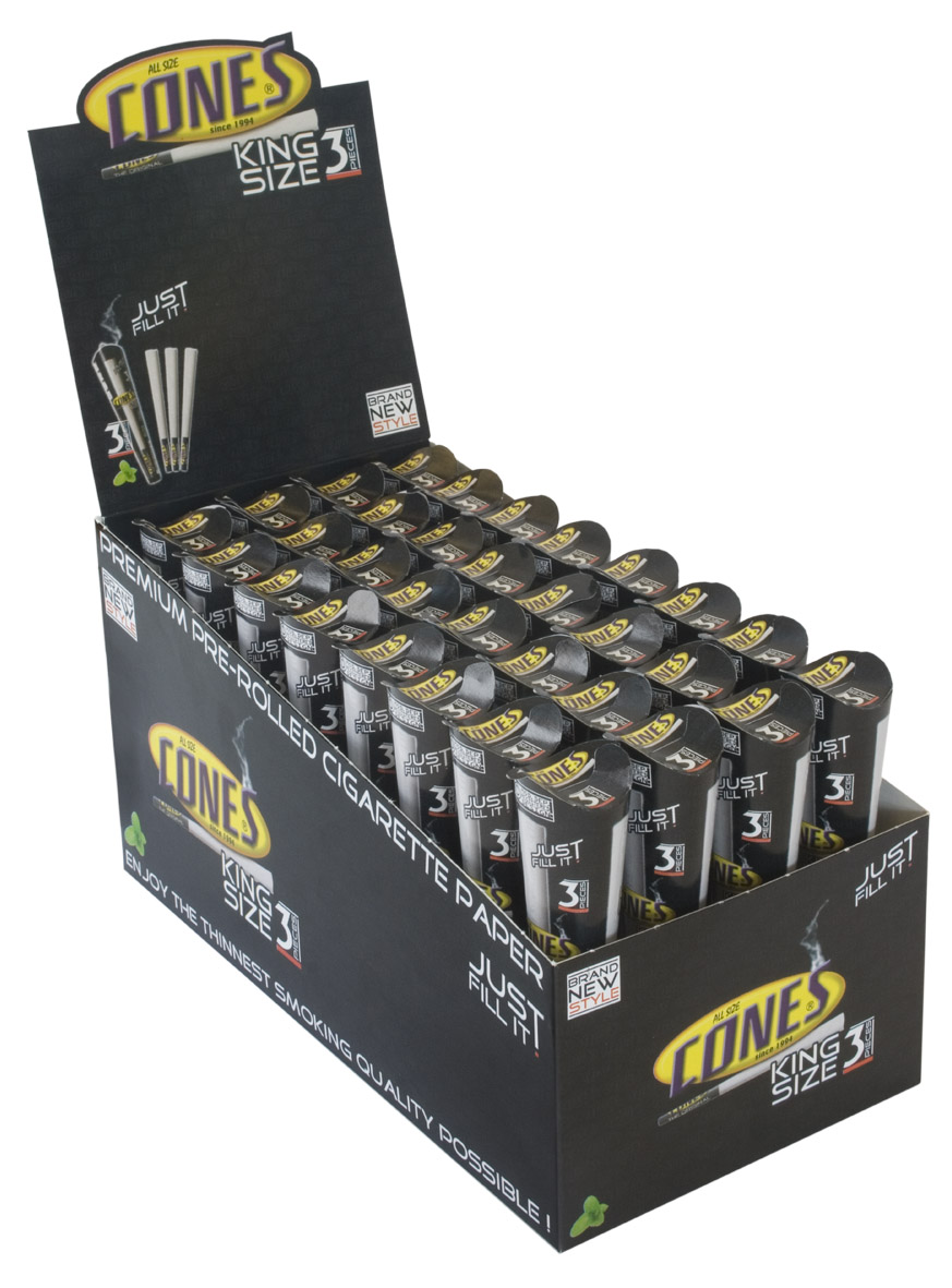 CONES KING SIZE Prerolled Papercones Refill vorgedrehte Joint-Hüllen 3er Pack(96xEinzelne) 109x30mm Filter im 32er T-Dsp.