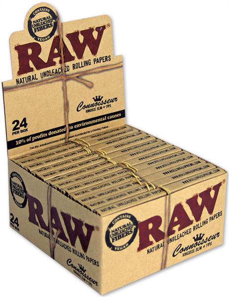 RAW Classic Connoisseur, King Size Slim Papers & Filter,110x44mm 32 Blatt 24 Heftchen im T-Dsp.