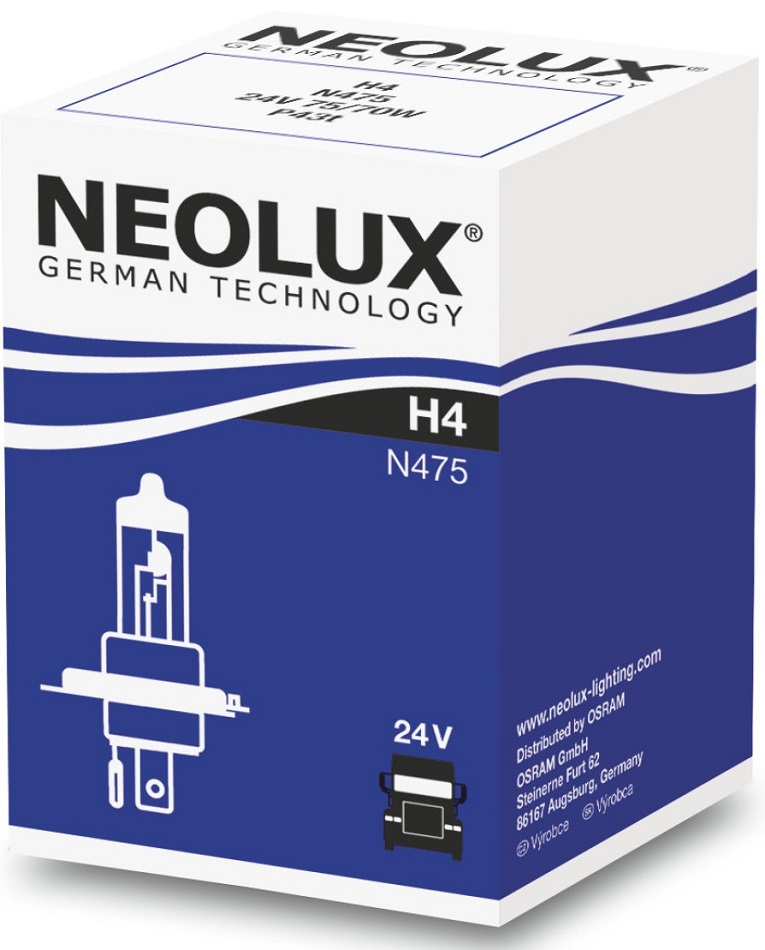 Leuchtmittel Neolux N475 - H4 24V - 75/70W LKW Orginal Halogen Leuchtmittel Abblendlicht/Fernlicht - Standard P43t 1er Faltschachtel