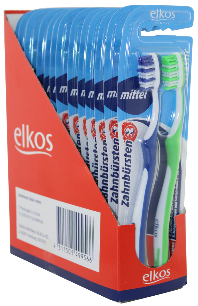 Elkos Zahnbürste Classic mittel 2er BK im 13er Dsp.