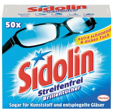 Sidolin Brillen-Putztuch auch für Kunstoff- und entspiegelte Gläser im 50er Pack