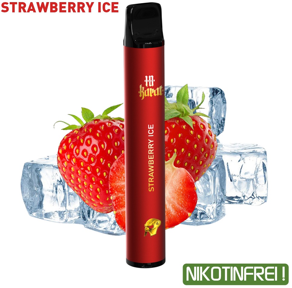 18 Karat E-Shisha STRAWBERRY ICE - NO Nikotin 0mg ca. 800 Züge 400mAh Einweg-Pos