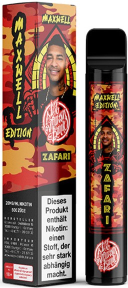 187 Strassenbande E-Shisha ZAFARI MAXWELL EDITION (Drachenfrucht, Blutorange, Zitrone) - Nikotin 2ml Liquid Nikotin 20mg/ml ca. 600 Züge 500mAh Einweg-Pos System TPD konform 10er T-Dsp.(mit Steuerbanderole)