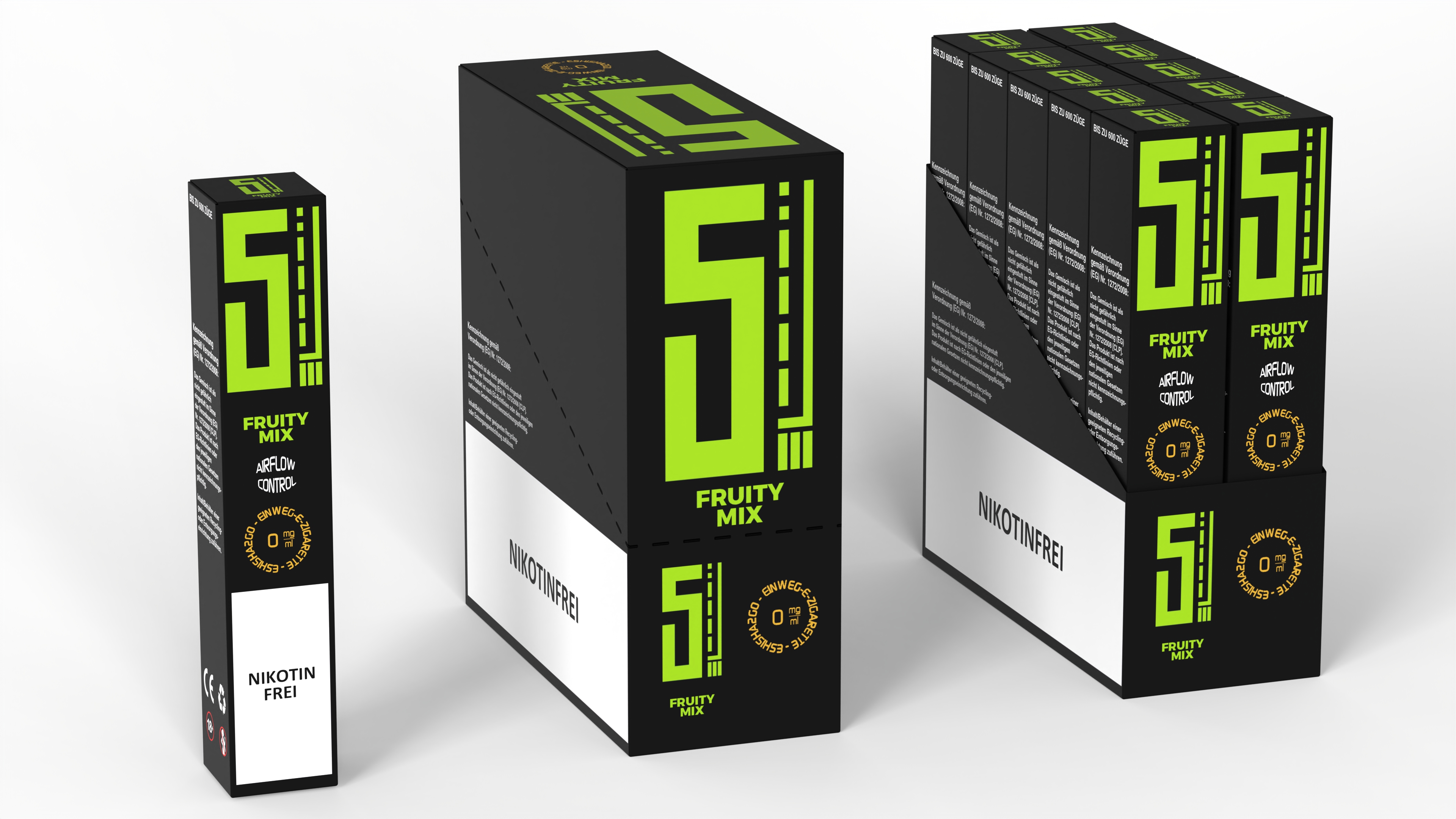 5EL E-Shisha FRUITY MIX ca. 600 Züge - NO Nikotin 550mAh Einweg-Pos System TPD konform 10er T-Dsp.(mit Steuerbanderole)
