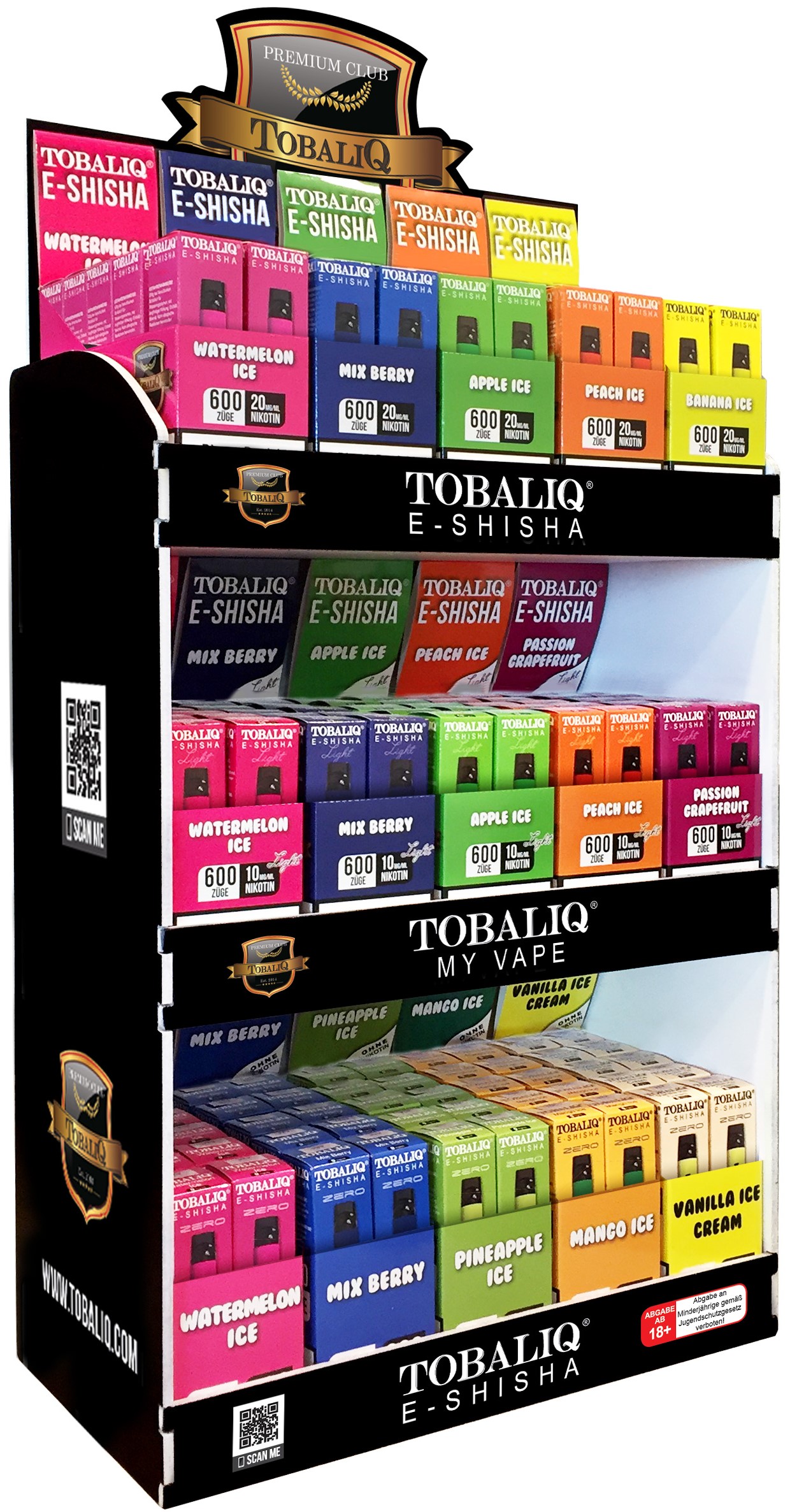 TobaliQ E-Shisha TQ-Smile E-Shisha Mix 200tlg. 150er T-Dsp. ca. 600 Züge inkl. 5 Nachfüllpacks - Nikotin 2ml Liquid Nikotin 20mg/ml + 10mg/ml + 0mg/ml 550mAh Einweg-Pos System TPD konform 150er T-Dsp.(zufälliger Mix: 10x 20mg/ml Nikotin, 5x 10mg/ml Nikotin, 5x 0mg/ml Nikotin)(mit Steuerbanderole)