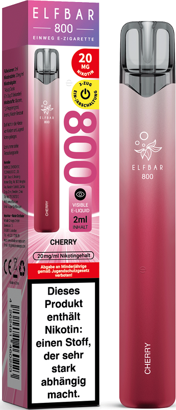 Elfbar 800 E-Shisha CHERRY ca. 800 Züge - mit Turbo-Mode / sichtbarem Liquid / Kindersicherung, Nikotin 2ml Liquid Nikotin 20mg/ml 550mAh Einweg-Pos System TPD konform 10er T-Dsp.(mit Steuerbanderole)