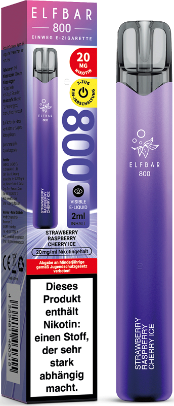 Elfbar 800 E-Shisha STRAWBERRY RASPBERRY CHERRY ICE ca. 800 Züge - mit Turbo-Mode / sichtbarem Liquid / Kindersicherung, Nikotin 2ml Liquid Nikotin 20mg/ml 550mAh Einweg-Pos System TPD konform 10er T-Dsp.(mit Steuerbanderole)