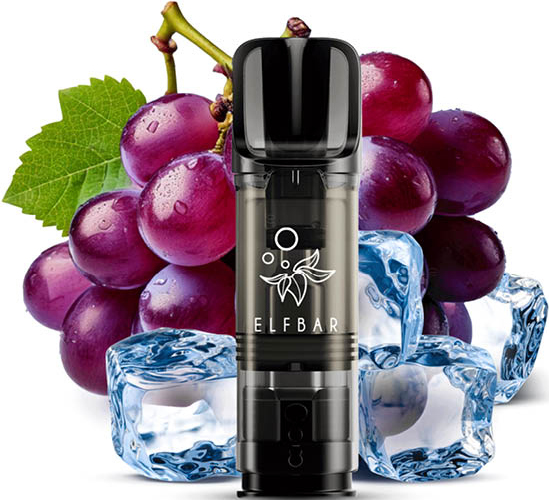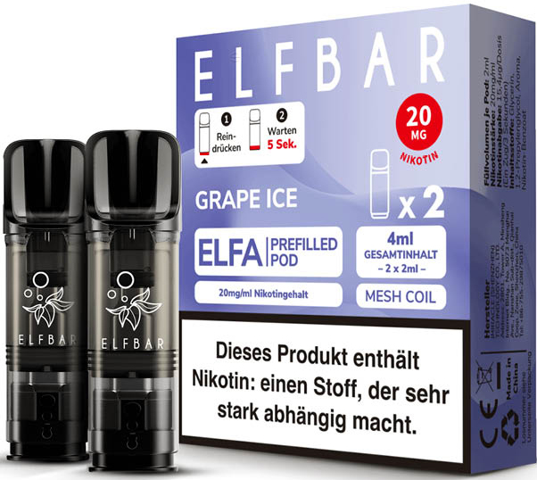 Elfbar ELFA CP Prefilled Pod GRAPE ICE ca. 600 Züge - Nikotin 2ml Liquid Nikotin 20mg/ml Prefilled-Pod System TPD konform 2er Pack in 10er T-Dsp.(kompatibel mit allen ELFA Basisgeräten)(mit Steuerbanderole)