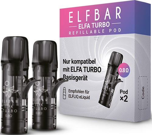 Elfbar ELFA Refillable Pods - 0.8 Ohm 2ml Füllvolumen mit Mesh Verdampferkopf im 2er Pack (nur kompatibel mit Elfbar ELFA TURBO Systemen)