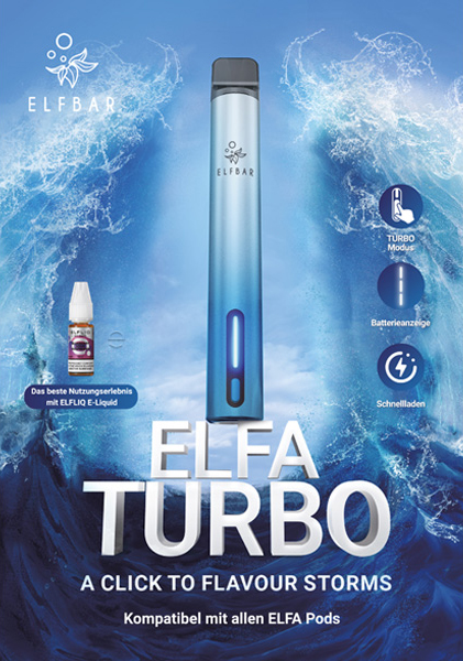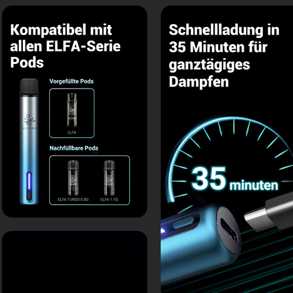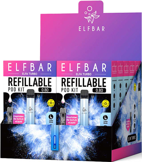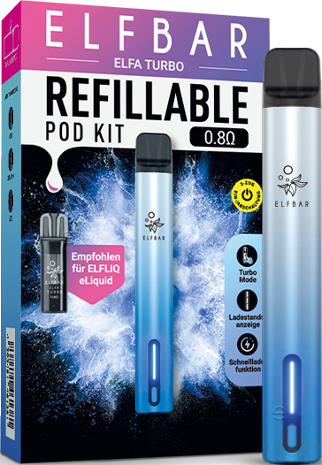 Elfbar ELFA TURBO Basisgerät AURORA CYAN - inkl. 1x Refillable Pod, mit Kindersi