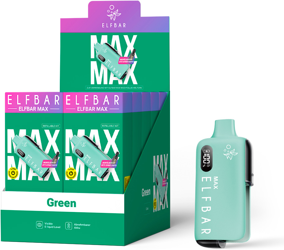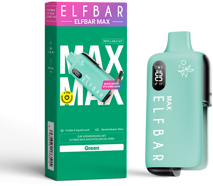 Elfbar MAX Basisgerät GREEN - mit Batterieanzeige & Kindersicherung, Akku Kapazi