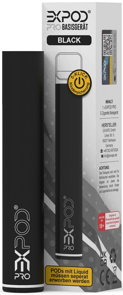 Expod PRO Basisgerät BLACK - mit Kindersicherung, Akku Kapazität: 400mAh, auflad