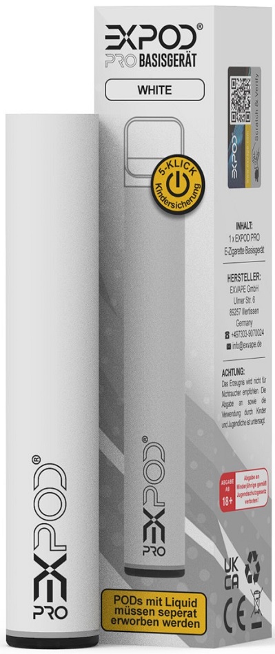 Expod PRO Basisgerät WHITE - mit Kindersicherung, Akku Kapazität: 400mAh, aufladbar mit USB-C Ladekabel, magnetische Pod Aufnahme in 10er T-Dsp.(kompatibel mit allen Expod PRO Pods)