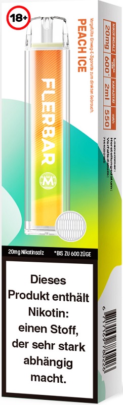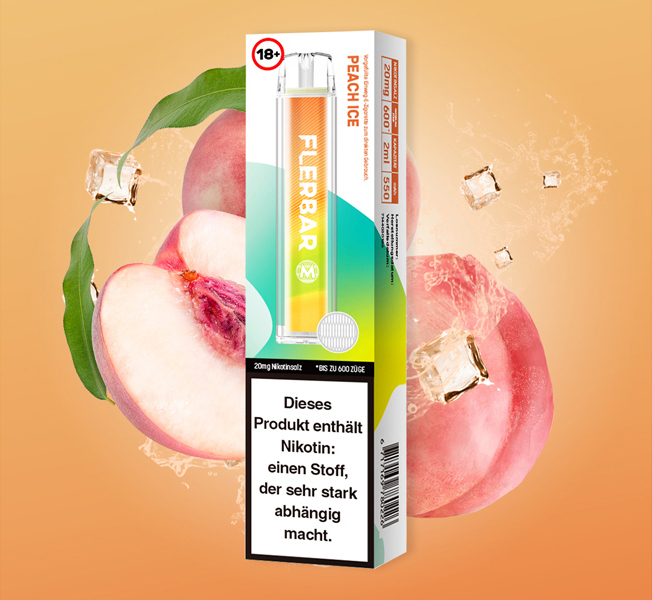 Flerbar M 600 E-Shisha PEACH ICE ca. 600 Züge - mit Kindersicherung, Nikotin 2ml Liquid Nikotin 20mg/ml 550mAh Einweg-Pos System TPD konform 10er T-Dsp.(mit Steuerbanderole)