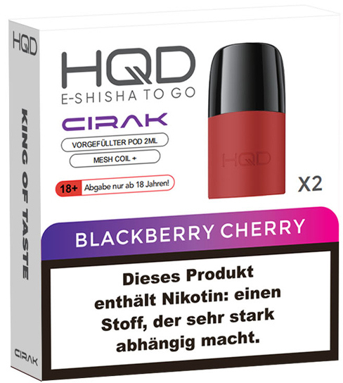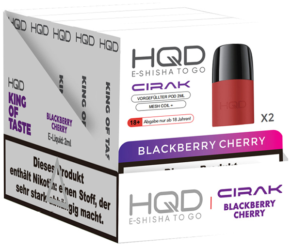 HQD Cirak Prefilled Pod BLACKBERRY CHERRY ca. 600 Züge - Nikotin 2ml Liquid Nikotin 18mg/ml Prefilled-Pod System TPD konform 2er Pack im 5er T-Dsp.(kompatibel mit allen Cirak Basisgeräten)(mit Steuerbanderole)