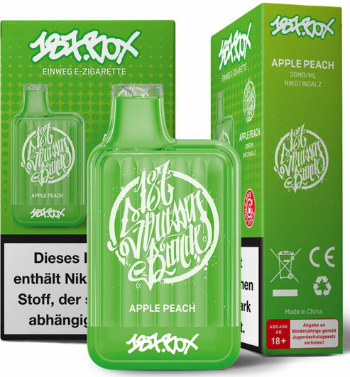 187 Strassenbande Box E-Shisha APPLE PEACH - Nikotin 2ml Liquid Nikotinsalz 20mg/ml ca. 600 Züge 550mAh Einweg-Pos System TPD konform 10er T-Dsp.(mit Steuerbanderole)