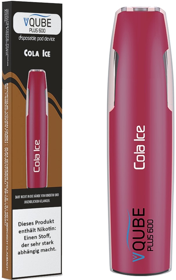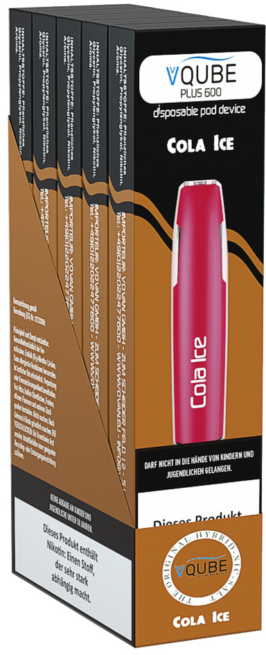 Vovan Vqube Plus600 E-Shisha COLA ICE - Nikotin 2ml Liquid Nic-Salt 16mg/ml ca. 600 Züge 400mAh Einweg-Pos System TPD konform 5er T-Dsp.(mit Steuerbanderole)