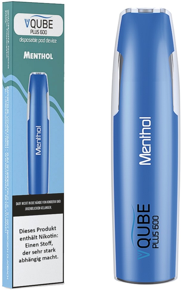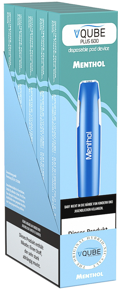 Vovan Vqube Plus600 E-Shisha MENTHOL - Nikotin 2ml Liquid Nic-Salt 16mg/ml ca. 600 Züge 400mAh Einweg-Pos System TPD konform 5er T-Dsp.(mit Steuerbanderole)