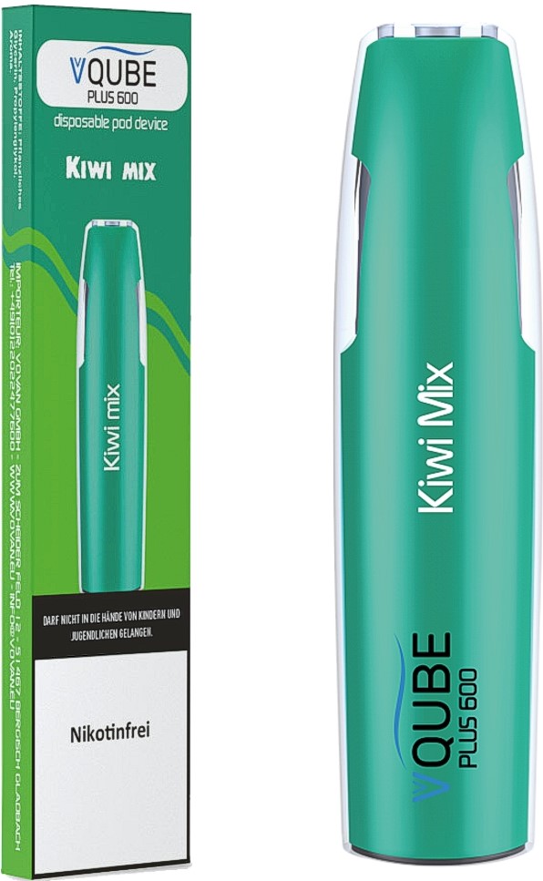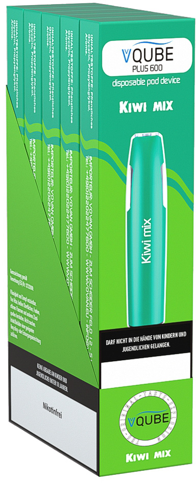 Vovan VQube Plus600 E-Shisha KIWI MIX - NO Nikotin ca. 600 Züge 400mAh Einweg-Pos System TPD konform 5er T-Dsp.(mit Steuerbanderole)