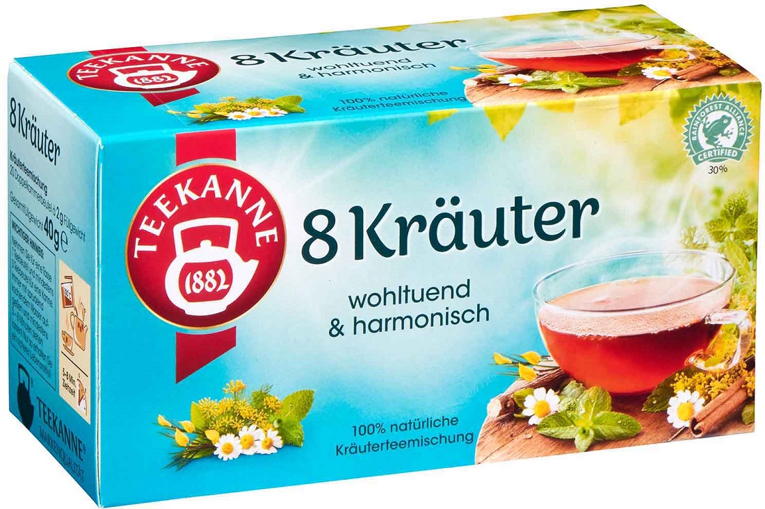 Teekanne Natur 8 Kräuter wohltuend & harmonisch ein Genuss aus 100% natürlicher Kräuterteemischung 20 einzeln verpackte Doppelklammerbeutel in 40g Packung