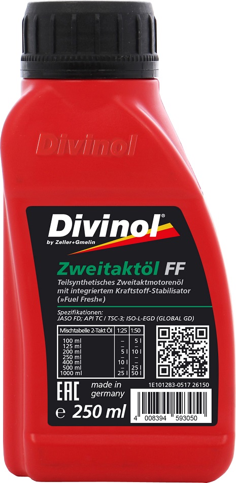 DIVINOL Zweitaktöl FF Universal teilsynthetisch, mit integriertem Kraftstoffstabilisator in 250ml Mauserflasche