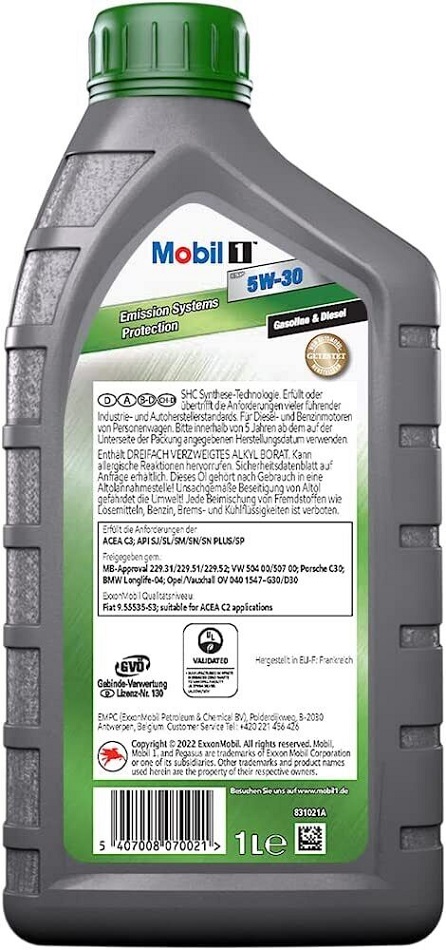 Mobil 1 ESP 5W-30 1Liter (ACEA C2/C3, API SJ/SL/SM/SN/SN Plus/SP, MB 229.31/229.